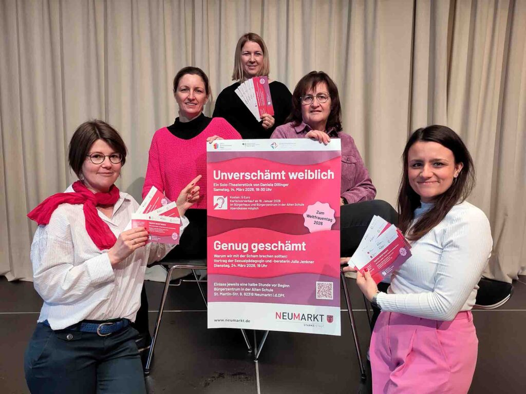 Neumarkt. In ihrem Solo-Theaterstück “Unverschämt weiblich” zeigt Schauspielerin Daniela Dillinger in der Rolle der Mathilda, was Frausein heute bedeutet – zwischen gängigen Schönheitsidealen und ergrauenden Haaren, zwischen Konsum und ökologischen Katastrophen, zwischen Freiheit und Pflichterfüllung, Selbstverwirklichung und gesellschaftlichem Engagement. Nach und nach präsentiert sich Mathilda in all ihren Facetten und nimmt kein Blatt mehr vor den Mund: witzig, frech, charmant. Das Theaterstück wird am Samstag, 14. März 2026, um 19:30 Uhr im Bürgerzentrum in der Alten Schule in Pölling anlässlich des Weltfrauentages gezeigt. Karten können im Bürgerhaus in der Innenstadt sowie im Bürgerzentrum in der Alten Schule im Vorverkauf für 5 Euro pro Stück oder an der Abendkasse erworben werden.