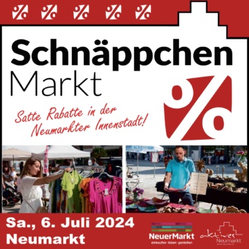 Am Samstag, den 6. Juli 2024, lädt die Einkaufsstadt Neumarkt von 9 bis 16 Uhr wieder zum traditionellen Schnäppchenmarkt ein. Vor und in den Geschäften in der Innenstadt sowie im Stadtquartier „NeuerMarkt“ werden Schuhe, Textilien, Haushaltsartikel und vieles mehr durch saftige Rabatte zu absoluten „Schnäppchen“. Auch Unternehmen, deren Geschäfte außerhalb der Innenstadt liegen, sind durch Stände in der Altstadt vertreten. „Die Besucher sollen die Möglichkeit haben, Qualität zum kleinen Preis zu kaufen“, so City-Manager Christian Eisner. Der Schnäppchenmarkt bietet der Geschäftswelt auch eine gute Gelegenheit, die Lager zu leeren, um Platz für die kommenden Kollektionen und neue Ware zu machen.