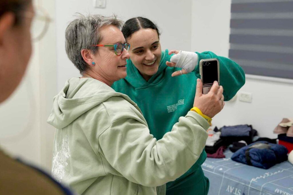 Anschließend wurden die Freigelassenen nach Israel gefahren, wo ihre Mütter sie nach langen Monaten bangen Wartens in die Arme schließen konnten. Danach wurden die Frauen in ein Krankenhaus bei Tel Aviv geflogen, wo sie von einer Menschenmenge mit Applaus begrüßt wurden. Ein gut zwei Minuten langes von der Regierung veröffentlichtes Video zeigt das äußerst emotionale Wiedersehen der drei Frauen mit ihren Angehörigen dort: Es gab innige Umarmungen, es flossen Tränen, es war Schluchzen und Jubel zu hören.