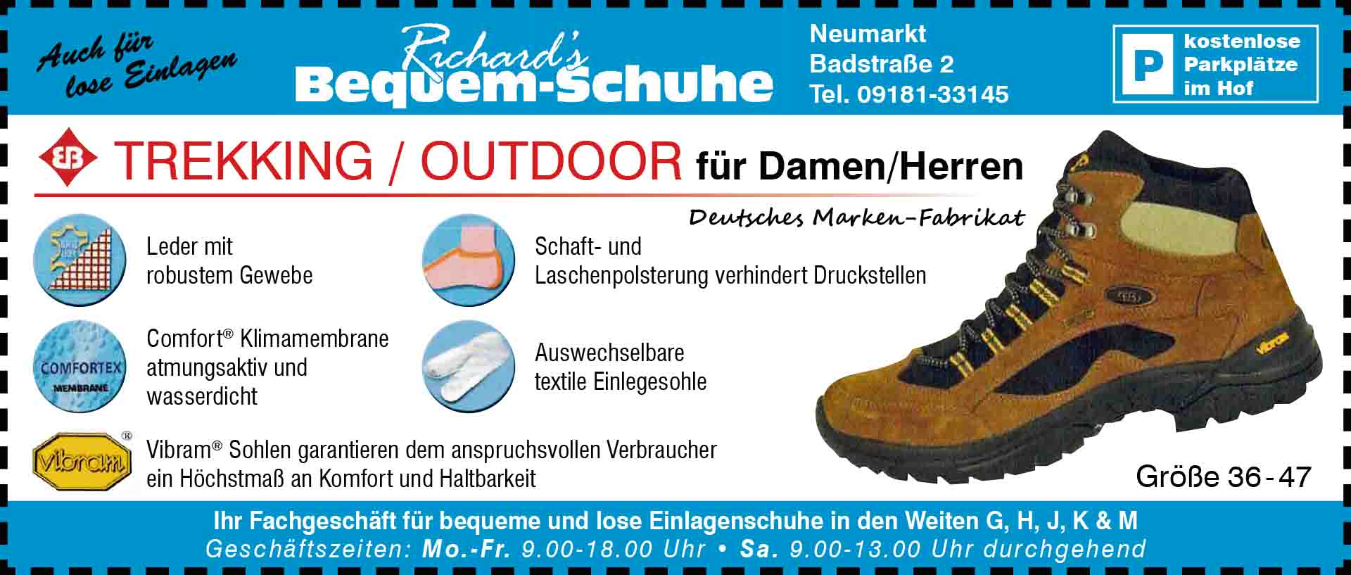 Abwechslungsreiche Strecken durch Wälder, entlang von Bächen oder auf aussichtsreichen Berggipfeln versprechen unvergessliche Erlebnisse. Der Wechsel zwischen Anstiegen und ebenen Passagen sorgt für Spannung und Herausforderung. Wandern erfordert – bis auf das passende Schuhwerk – keine besondere Ausrüstung oder spezielle Fähigkeiten. Bequeme Wanderschuhe, die den Fuß unterstützen und Halt geben, sind insbesondere für anspruchsvollere Touren zu empfehlen. Sie bieten nicht nur Trittsicherheit auf unterschiedlichem Terrain, sondern verhindern auch Blasen und Druckstellen – ein nicht unwichtiger Faktor für langanhaltenden Wanderspaß.