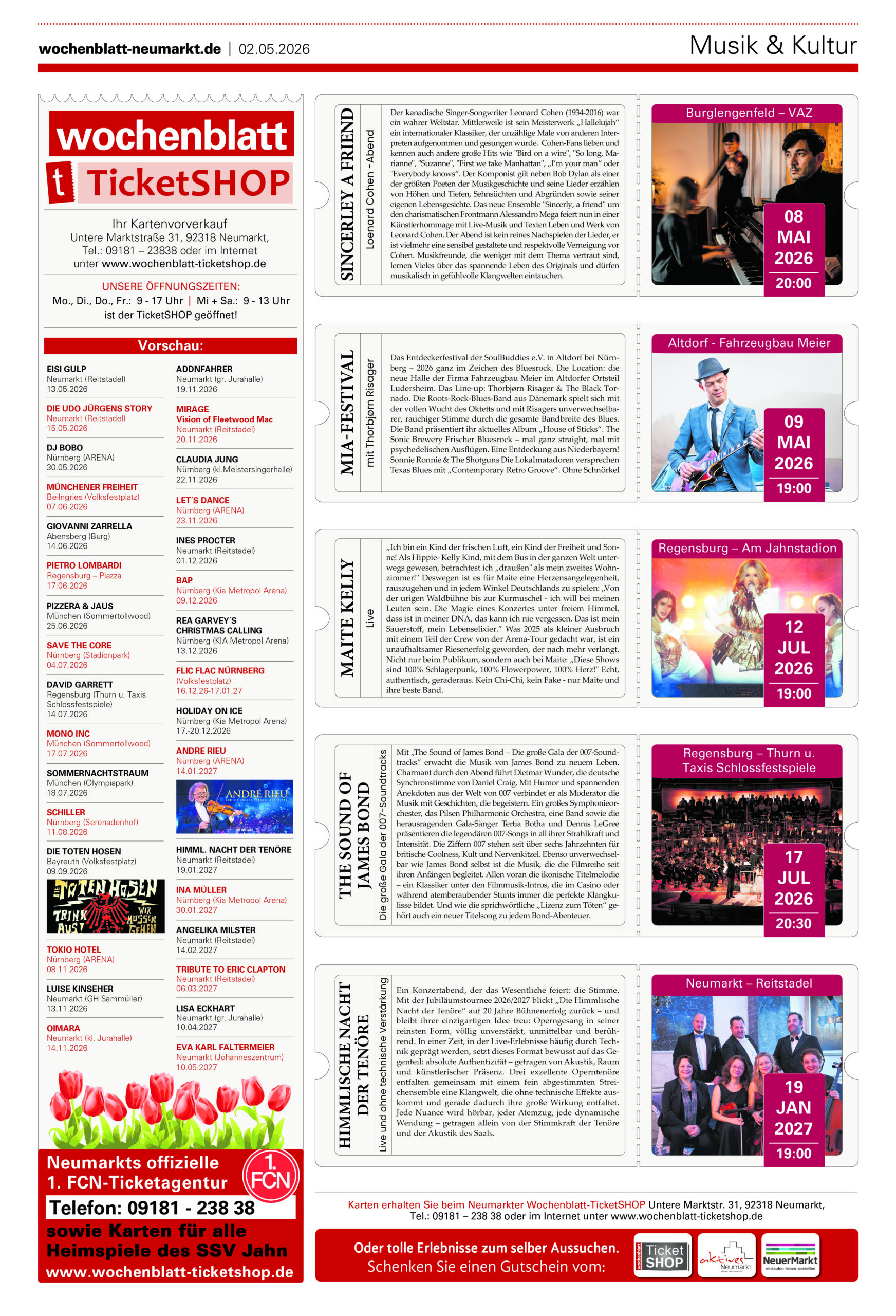 Öffnungszeiten Neumarkter Wochenblatt-TicketSHOP: