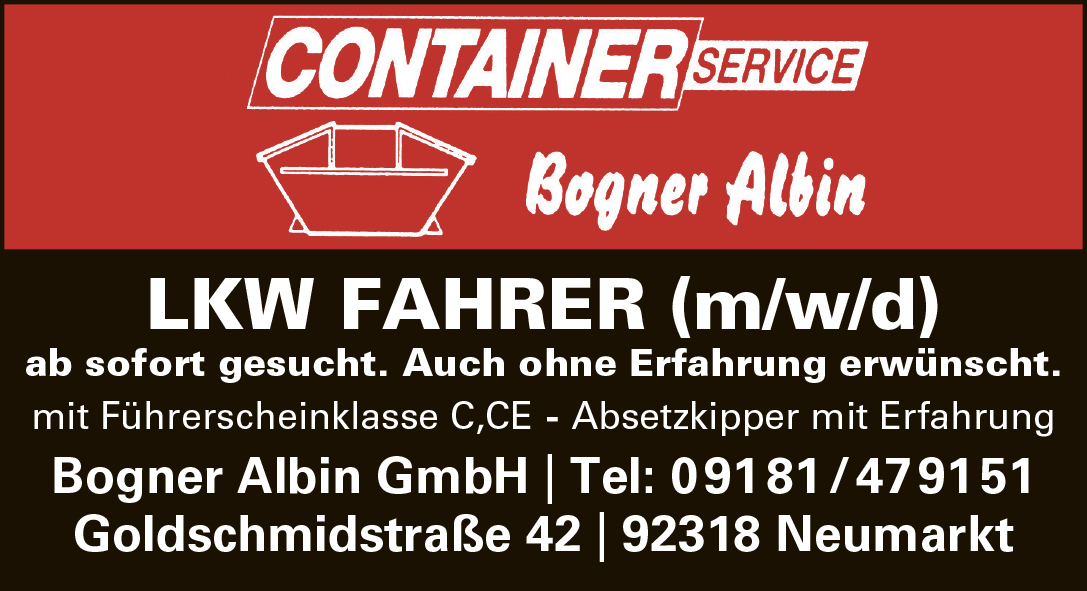 Start-Anzeige-Stellenanzeigen vom 25.04.2026 Stellenanzeigen vom 25.04.2026 -Anzeige-Stellenmarkt 23. April 2026 Aktualisiert vor: 23. April 2026 teilen E-Mail teilen teilen -Anzeige- Auf der Suche nach einem neuen Job? Hier die aktuellen Stellenanzeigen vom Wochenblatt Neumarkt teilen E-Mail teilen teilen Anzeige Ältere Stellenanzeigen -Anzeige- Stellenanzeigen vom 11.04.2026 Wochenblatt Neumarkt - 9. April 2026 -Anzeige- Stellenanzeigen vom 04.04.2026 Wochenblatt Neumarkt - 1. April 2026 -Anzeige- Stellenanzeigen vom 28.03.2026 Wochenblatt Neumarkt - 26. März 2026 -Anzeige- Stellenanzeigen vom 21.03.2026 Wochenblatt Neumarkt - 19. März 2026 -Anzeige- Stellenanzeigen vom 14.03.2026 Wochenblatt Neumarkt - 12. März 2026 Anzeige Das könnte Sie auch interessieren -Anzeige- Das Lager in Nürnberg ist fast leergeräumt! Wochenblatt Neumarkt - 16. April 2026 -Anzeige- Stellenanzeigen vom 18.04.2026 Wochenblatt Neumarkt - 16. April 2026 -Anzeige- Jetzt wird gelernt – und zwar mit Vergnügen! Susanne Weigl - 9. April 2026 -Anzeige- Stellenanzeigen vom 11.04.2026 Wochenblatt Neumarkt - 9. April 2026