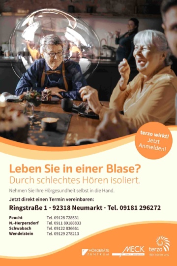 „Ich höre eigentlich noch gut. Nur mit dem Verstehen von Sprache in einer unruhigen Umgebung habe ich häufig Probleme.“ So äußern sich viele Kunden, die in das Hörgeräte- und TerzoZentrum Neumarkt kommen, um sich zum Thema Hörgerät beraten zu lassen. Oft haben sie davor den Gang zum HNO-Arzt lange hinausgeschoben. Erst wenn im Beruf, in der Familie oder im Freundeskreis die Probleme in der Verständigung nicht mehr zu übersehen sind, suchen die meisten der Betroffenen eine professionelle Beratung.